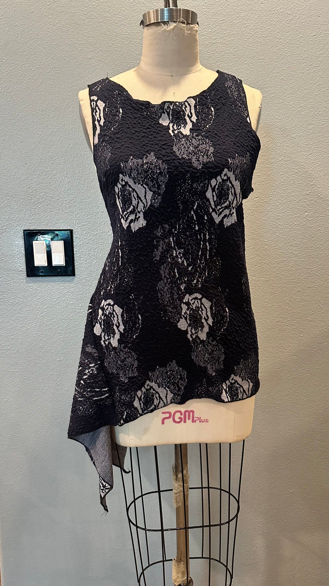 Sleeveless cut with asymmetrical hemline for unexpected shape and flow