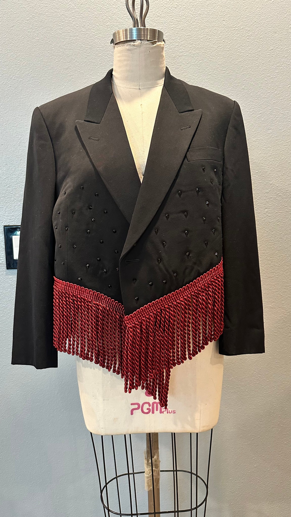 Unapologetically powerful and completely one of a kind — the Blac, One of Wun Tuxedo Blazer is not just a look, it’s a moment. Tailored to perfection in deep black with burgundy satin trim and strategically placed black crystal embellishments, this blazer commands attention with every move. Sophisticated, sultry, and slightly subversive — just like you.